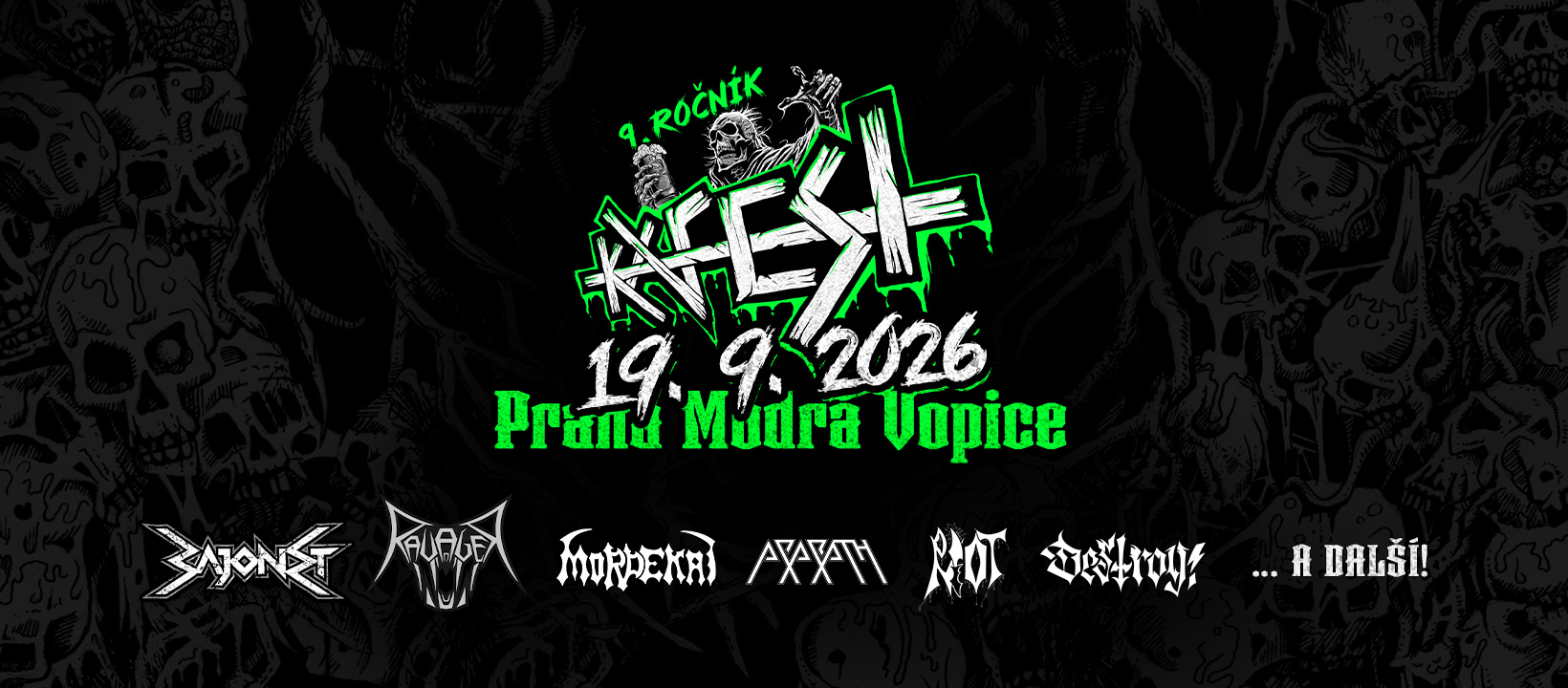 Na jednom pódiu se představí šest kapel, které pokrývají široké spektrum temných žánrů – od melodického deathu přes old-school thrash až po nihilistický crust.