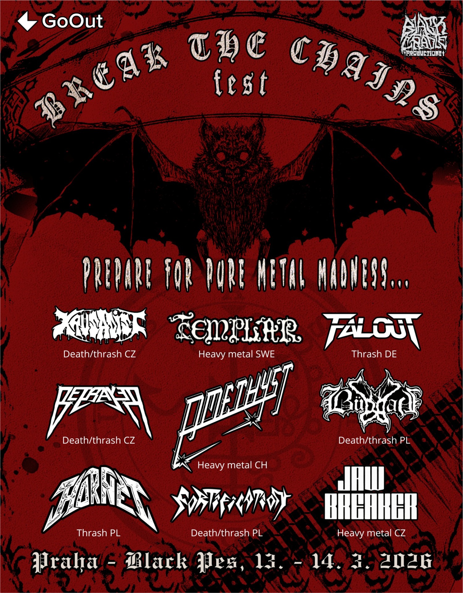 Svoláváme všechny vyznavače poctivé metalové klasiky do Black Pes music klubu v pražských Klánovicích! Toto zasvěcené místo se v pátek 13. a sobotu 14. března 2026 promění ve svatyni oldschoolového metalu. Společně projdeme cestu od melodických tónů klasického heavy metalu až po brutální deathrashový nářez!