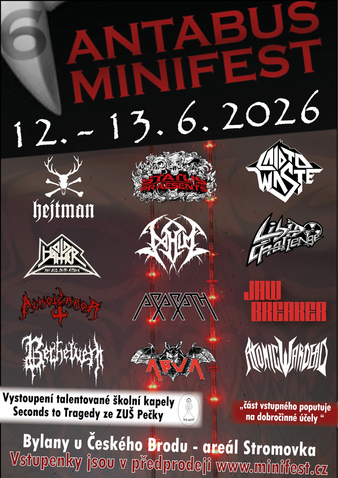Jednodenní metalová smršť v zastřešené jezdecké hale, kterou na jeden den proměníme v radioaktivní mosh výběh pro metaláky. Čeká tě 11 kapel, megatuny energie a atmosféra, co by probudila i terakotovou armádu. K tomu všemu náš signature drink Toxic Waste - kontaminace zaručena!